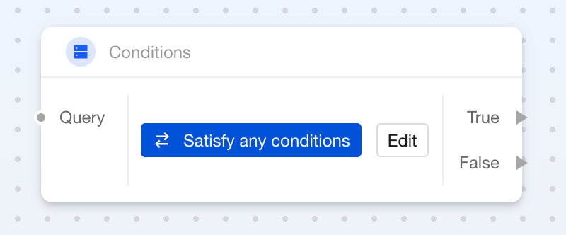 This block is multi-point type with 1 configuration parameter, 1 input point, and 2 output points. It directs the workflow to different paths based on query results. Details are as follows: