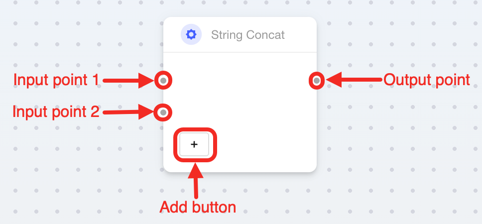 | Output Point | ✔ | Connects to 1 string variable block for concatenation results. |