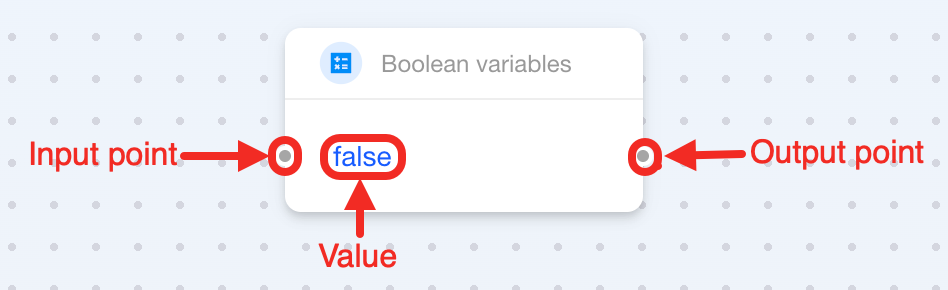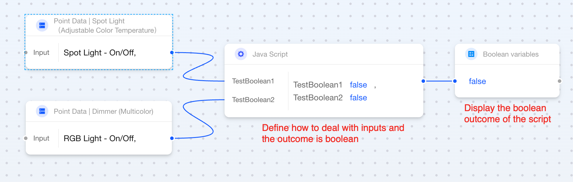 The input point, boolean value, and output point are all optional. Connect or configure them based on your actual logic needs.