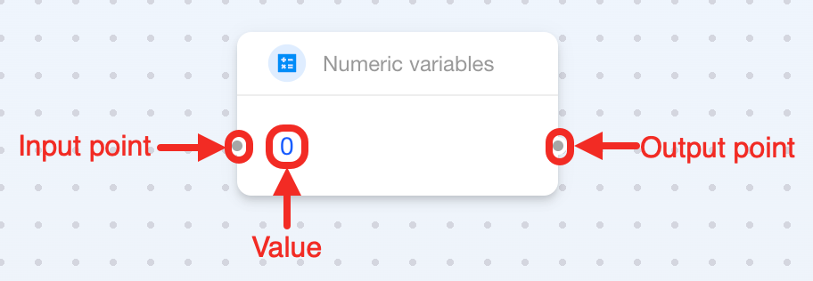 | Input Point | ✘ | It receives a numeric value, and supports connections to Math and JavaScript. |