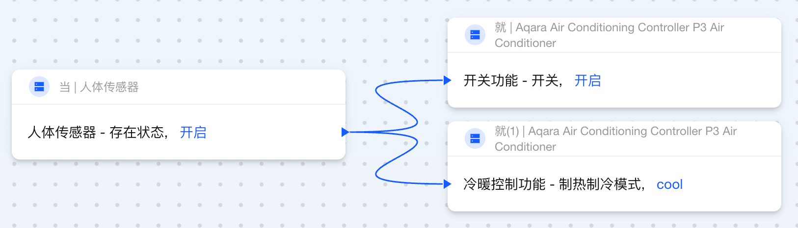 当检测到房间有人时,就打开空调并设置为制冷模式。