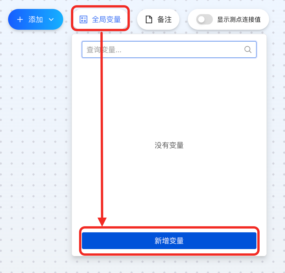 确认后,您需要将该变量卡片放置在画布的任意位置,它将作为全局变量的定义卡片供引用。