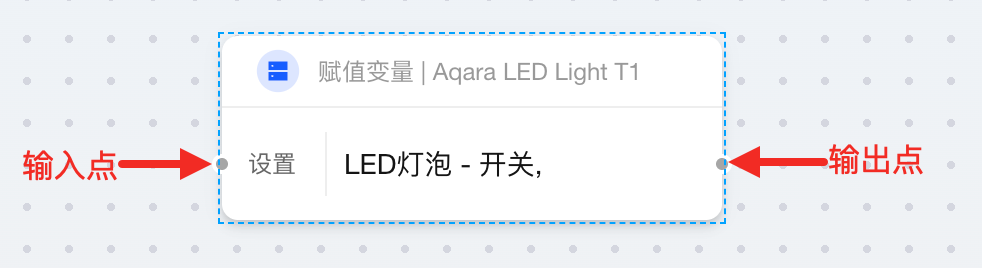 | 输入点 | ✘ | 用于控制设备,可连接其他 赋值变量、数值运算、逻辑运算、文本拼接 或 脚本卡片,通过获取它们的值,修改自己的值。 |
