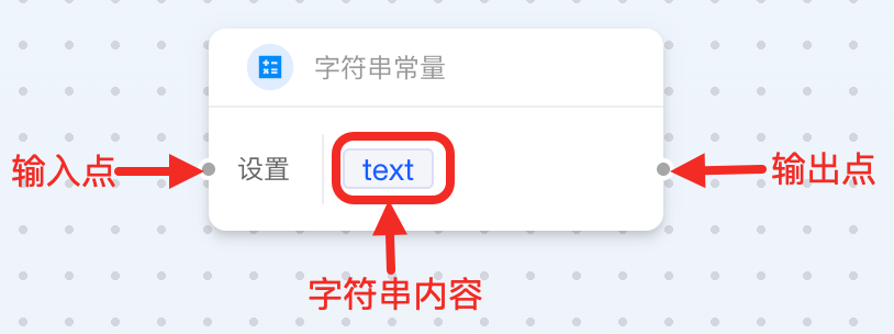 本卡片的输入点、字符串内容和输出点均为可选项,用户可根据实际逻辑需求灵活选择是否连接或配置。