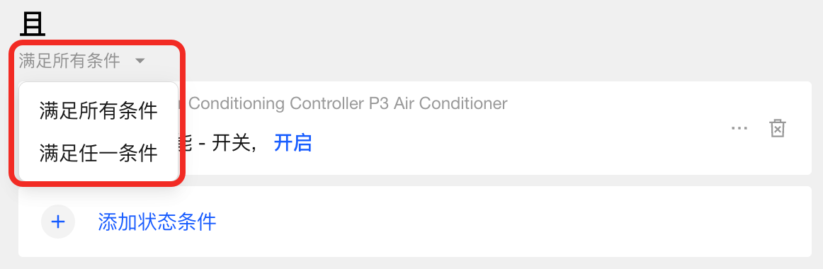 - 满足所有条件:所有状态条件均满足时,自动化才会被执行。