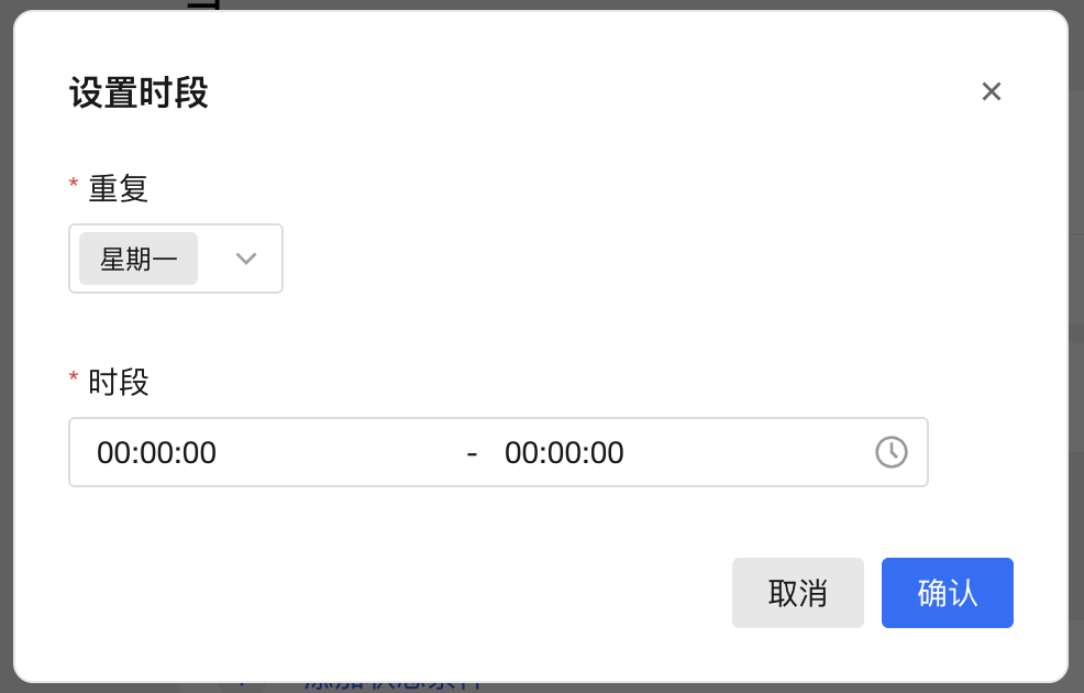 如需设置仅在特定日期和时间段监听事件,请点击 ... > 时段 进行配置。备注时间范围选择 00:00:00-00:00:00 时,表示此逻辑全天生效。