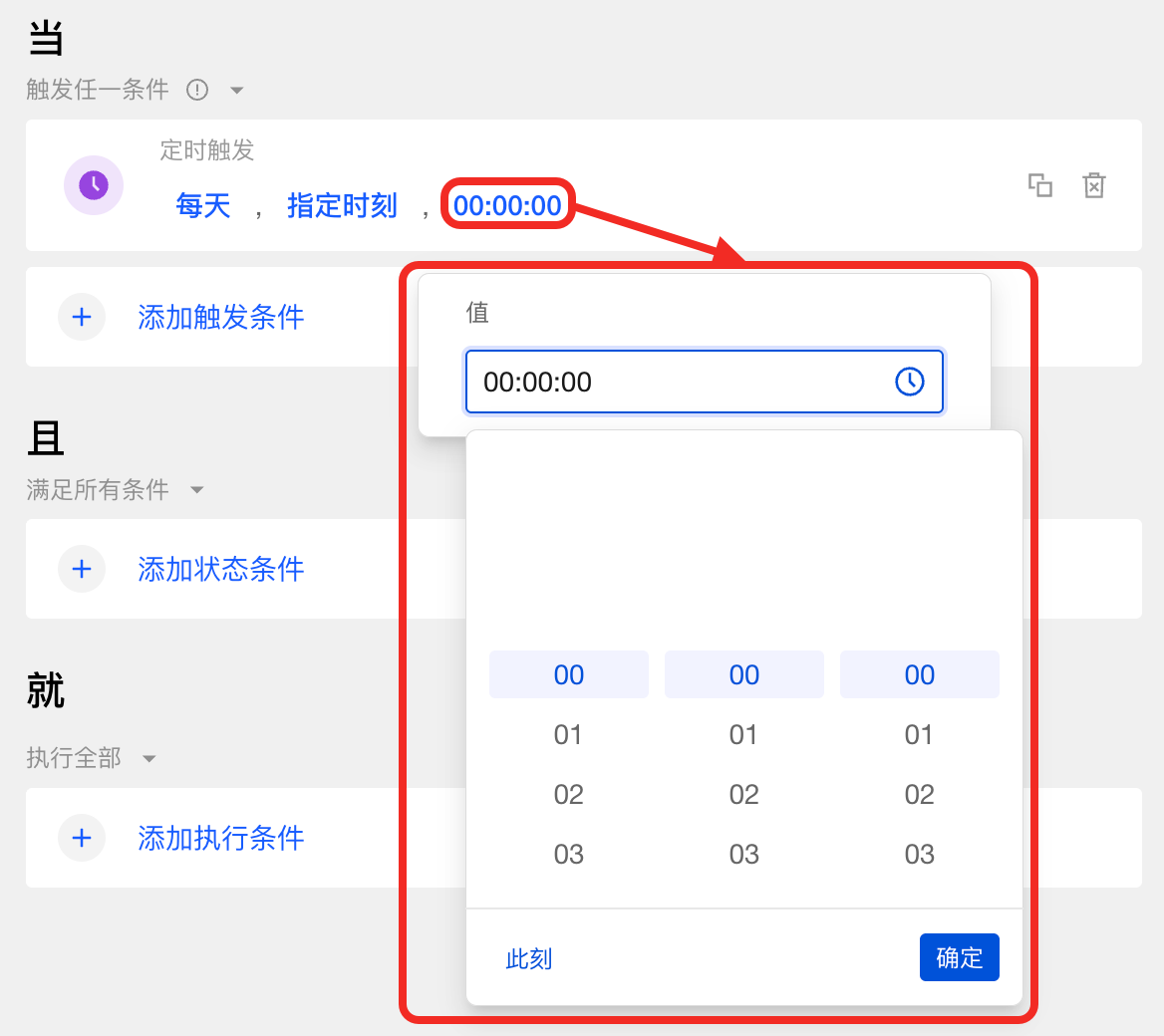 - 单击定时触发后: